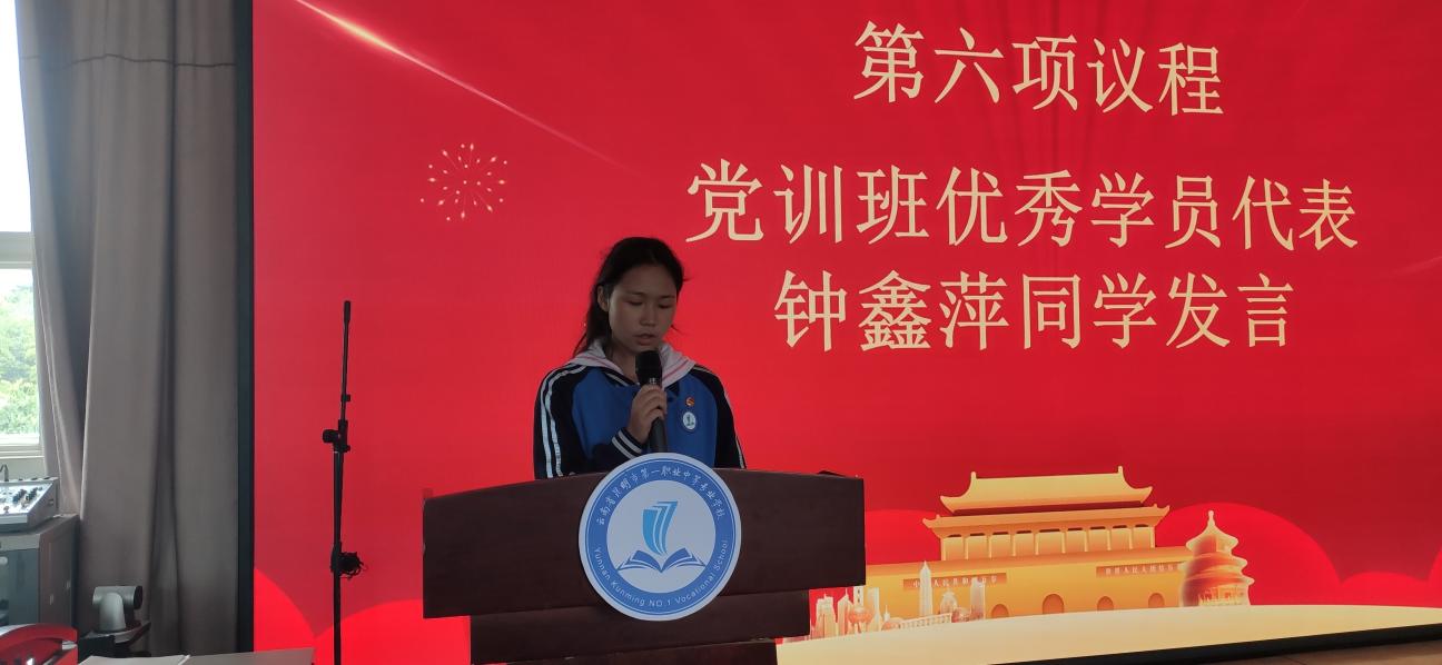 典禮伊始,全體師生起立、奏唱國(guó)歌。羅金珠老師向與會(huì)領(lǐng)導(dǎo)、老師介紹了本期黨訓(xùn)班學(xué)習(xí)情況,宣布了結(jié)業(yè)同學(xué)名單以及優(yōu)秀學(xué)員名單。她指出,此次黨訓(xùn)班的39名學(xué)員來(lái)自學(xué)前教育學(xué)部、商貿(mào)藝術(shù)學(xué)部和交通運(yùn)輸學(xué)部,他們通過(guò)前期班主任推薦、學(xué)部推薦、校黨總支和校團(tuán)委審核進(jìn)入第15期黨訓(xùn)班隊(duì)伍,是我校的一批優(yōu)秀團(tuán)員代表。在課程設(shè)置方面,此次黨訓(xùn)班邀請(qǐng)到顧世昆書(shū)記、王朝颙校長(zhǎng)等四名學(xué)校總支委員和陳潔老師、段殳老師等五名黨支部委員,開(kāi)展了以“學(xué)黨史 強(qiáng)信念 跟黨走”為主題的專題學(xué)習(xí)。九名老師分別從黨史教育、抗疫精神、文化自信、科技強(qiáng)國(guó)等角度精心備課、授課。期間還帶領(lǐng)學(xué)員到云南起義紀(jì)念館黨史學(xué)習(xí)教育實(shí)地研學(xué)、踐行“愛(ài)國(guó)衛(wèi)生七個(gè)專項(xiàng)行動(dòng)”、擔(dān)任五華區(qū)黨史知識(shí)競(jìng)賽志愿者等一系列志愿服務(wù)活動(dòng),取得了較好的效果。